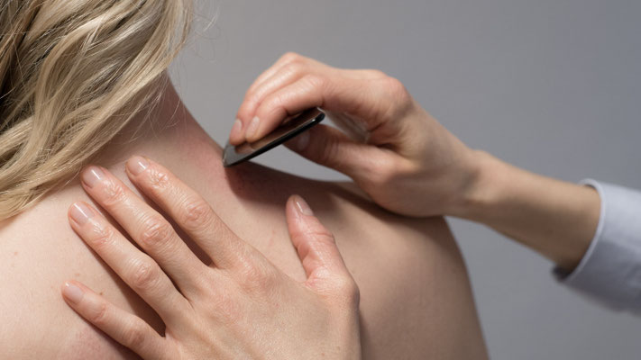 Das Gua Sha ist eine wirksame Methode um Blockaden zu lösen, die Durchblutung anzuregen und den Energiefluss zu harmonisieren. Die Behandlungstechnik wird gezielt zur Linderung von Schmerzen und muskulären Verspannungen, bei Erkältungen und grippalen Infekten oder bei organischen Leiden eingesetzt.